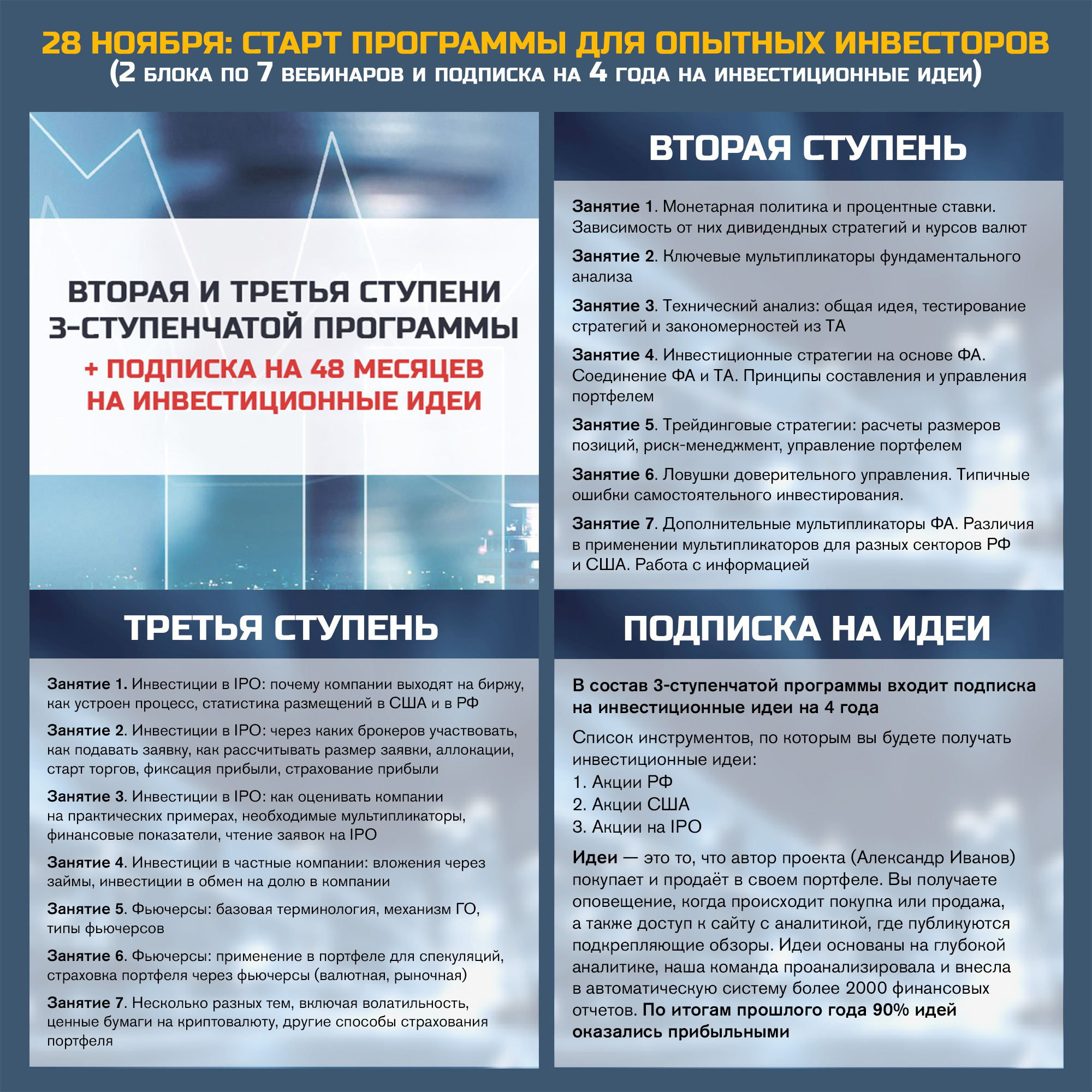 2. Третья ступень: 7 вебинаров зимой про продвинутые инвестиционные инструменты (IPO, частные компании, фьючерсы)